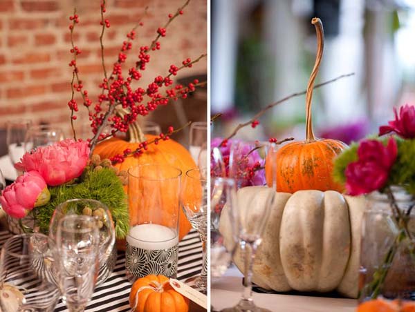 Fall is my absolute favorite season! I love getting out my cold weather clothes, scarves, boots, coats…. I love it all. Fall is also the perfect time to take the family to a pumpkin patch and pick out the perfect one to take home and either carve or use in your house to decorate. Below are my favorite ways I’ve seen fall pumpkins used to decorate your home and accessorize your wedding!