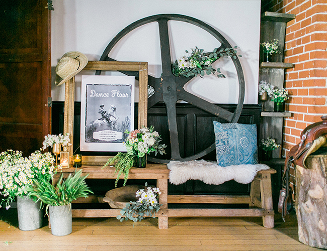 This wasn’t their first rodeo.. so it’s no surprise Be Inspired PR’s Tassels and Tastemakers Party won best in show this March! This was the 5th semi-annual Tassels and Tastemakers party – there has been glitter, and greenery, lots of gold, and now loads of lasso and leather (you’re in for a treat :). These affairs just keep getting better! If you haven’t already guessed it (hint: it’s in the title!) the theme was “Wild West.” So naturally, folks – meaning the top professionals in the wedding industry – flew in from all over wearing cowboy boots and hats. Yeehaw! All were greeted with a custom sheriff badge name tag and a letterpress guide to the night from Underwood Letterpress sporting a “sexy cowboy” on the front – and granted entrance to the two-steppin’, boot scootin’ soiree!