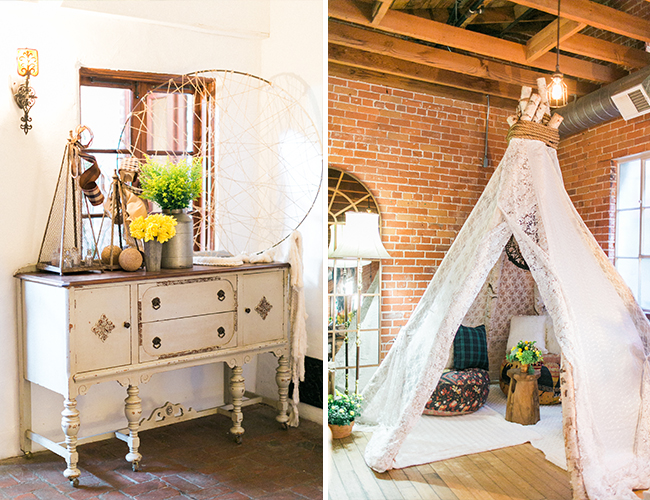 A custom teepee and dinner table with dream catchers overhead designed by Mindy Weiss had guest gawking and lounging inside!